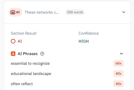 Though I will add, all the AI checking programs are dross. They will regularly say with great confidence that works published in the 90s are actually "AI text - High". They also miss things that are AI (I've done this test with my ebook library and stuff I've pumped out from various APIs). OpenAI gave up on trying to make a service for spotting AI text, even though I'm sure it would have been lucrative, simply because they couldn't get it to work accurately.